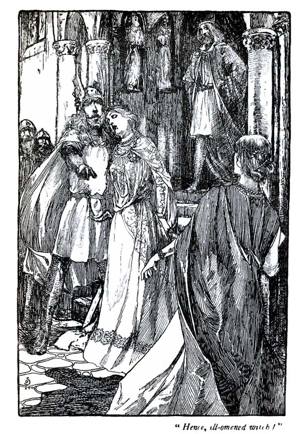 Note: There is nothing to support this theory, but the coincidence demands at least an airing. In 1905 (that's while he was still in Paris and before he illustrated any of the books in the accepted canon), L.C. Page, an American publishing house, released The Romance of Lohengrin - a prescient title, wouldn't you agree? Based on an adaptation of the Wagnerian opera by a Bernard Capes, this particular volume is "Illustrated by Sarcadi Pogany." The line drawings (see sample at right) are pretty intense and not terribly sophisticated. I've never encountered the name "Sarcadi Pogany" before or since. Is it possible that before his acknowledged career, Willy Pogany landed an illustration job in America? Anyone know? Is "Sarcadi" an Hungarian name or word? Curious minds want to know.
